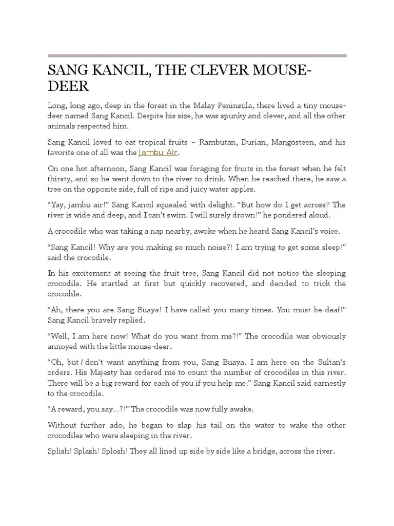 Sang Kancil In English : Sang Buaya Dan Sang Kancil Worksheet. Sang kancil the mousedeer has a clever plan to outwit sang buaya. Sang kancil is a character in malay traditional narratives.